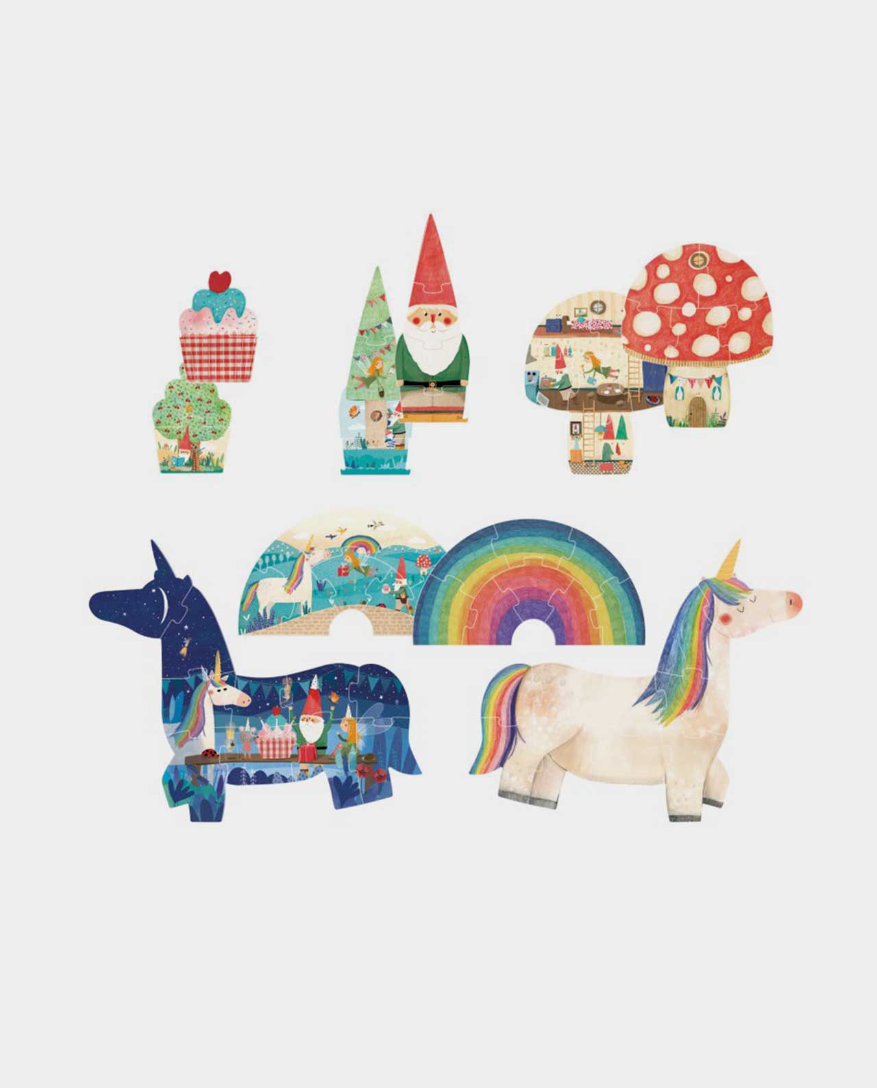 5 puzles progresivos (de dos a diez piezas)  reversibles para los más pequeños de la casa que nos descubrirán una bonita historia de amistad.