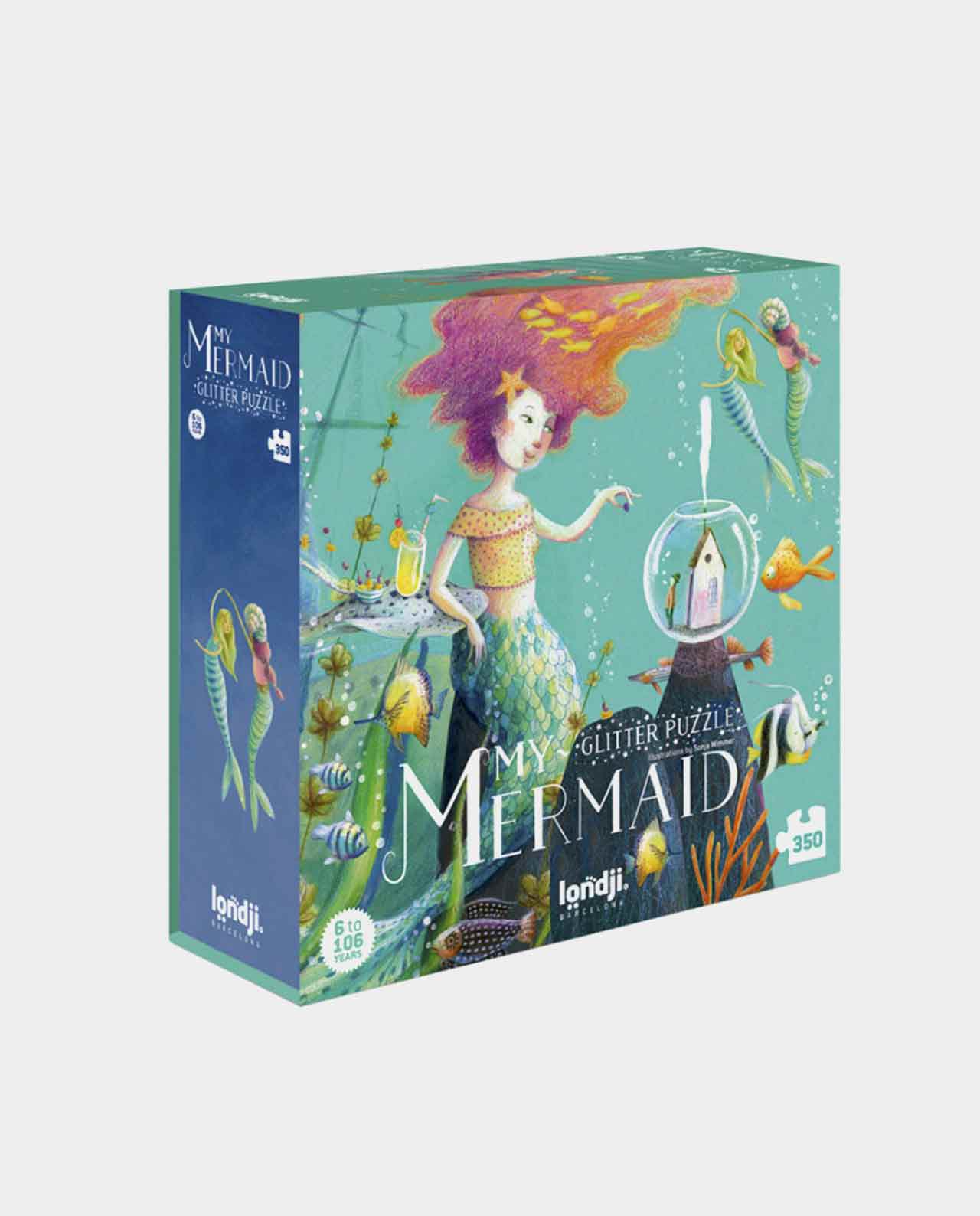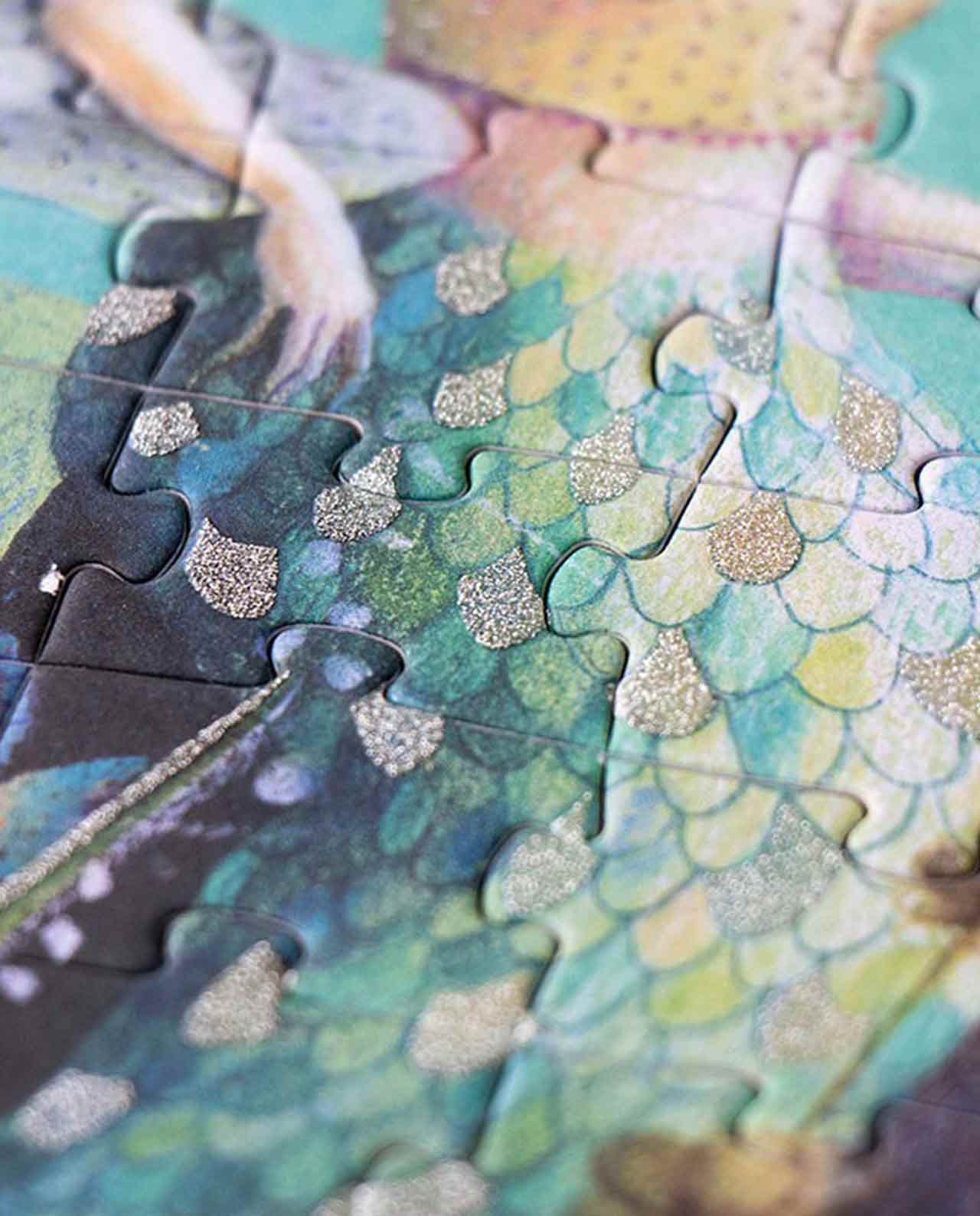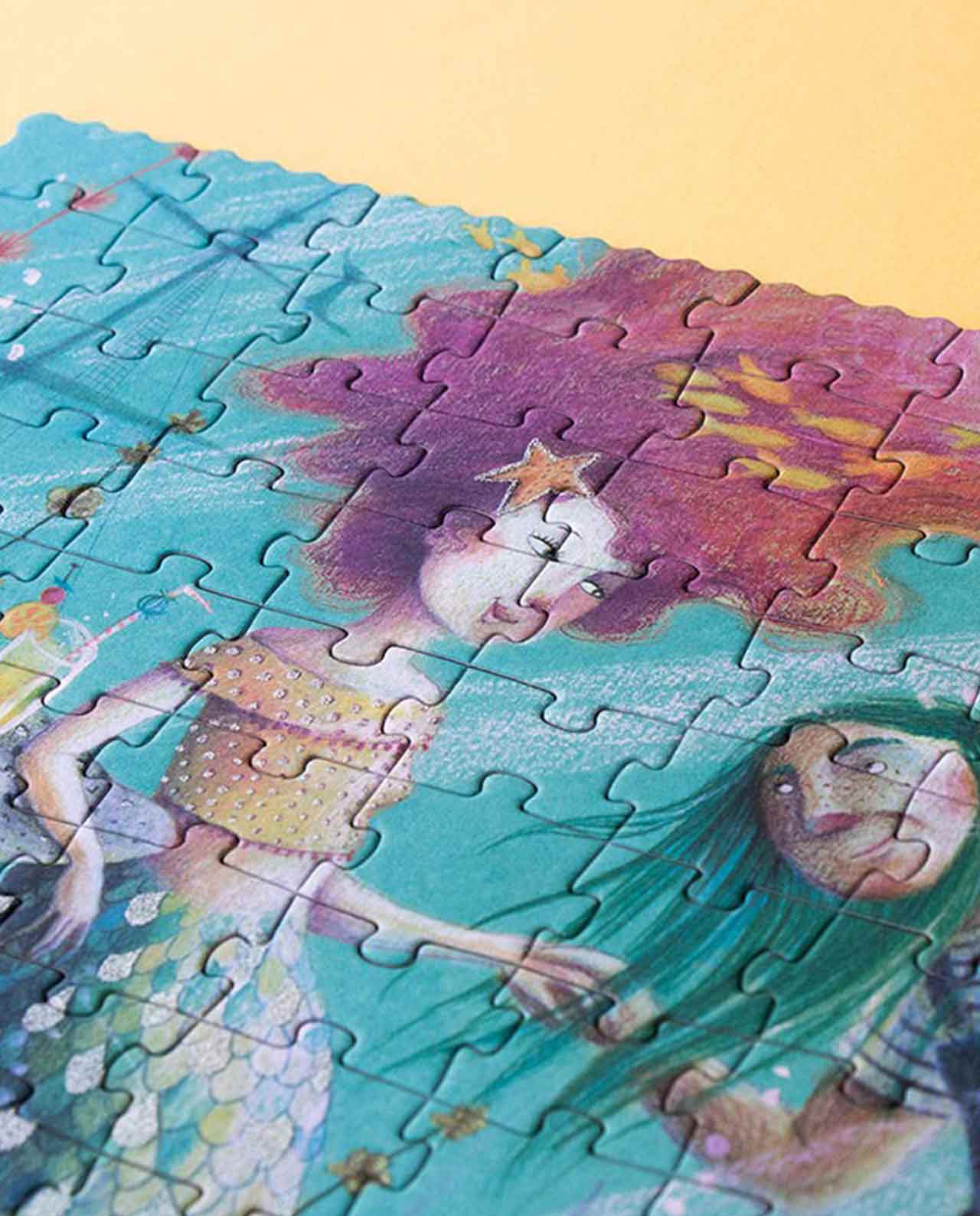 Un puzzle de 350 piezas, algunas con purpurina, para dejar volar la imaginación hacia mundos llenos de fantasía, para niñas y niños mayores de 8 años.