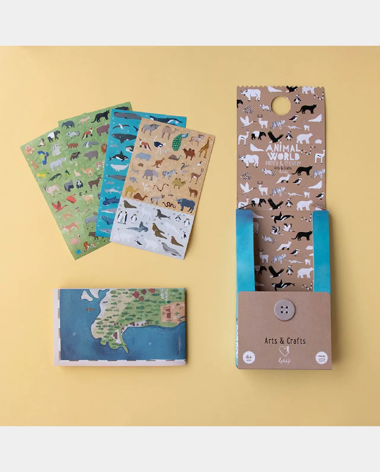 Una actividad con 165 pegatinas de animales y un póster del mapa mundial. ¡Un juego educativo para aprender mientras nos divertimos!