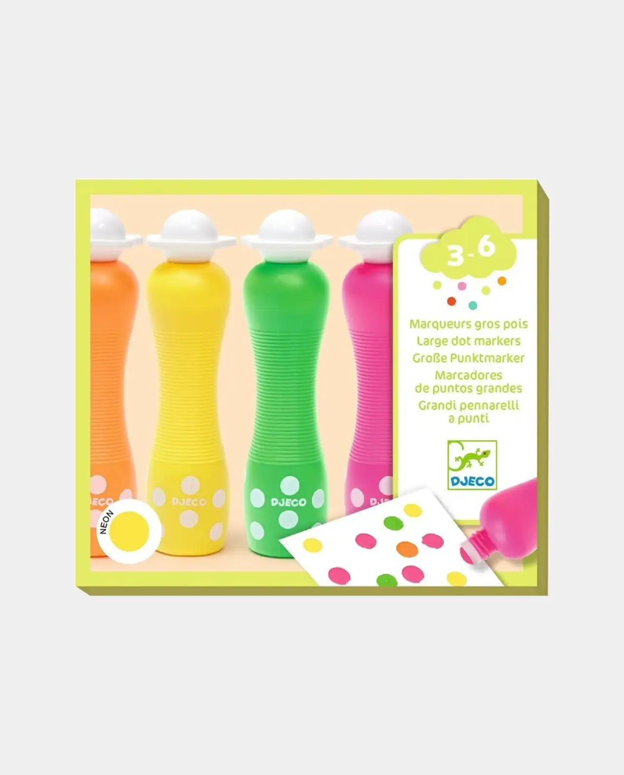 Los rotuladores de puntos grandes Neon son perfectos para manos pequeñas gracias a su diseño ergonómico y fácil de usar. Sus colores vibrantes y punta grande hacen que crear sea divertido y sencillo, mientras que la pintura se lava fácilmente, ¡ideal para que los peques disfruten sin preocupaciones!
