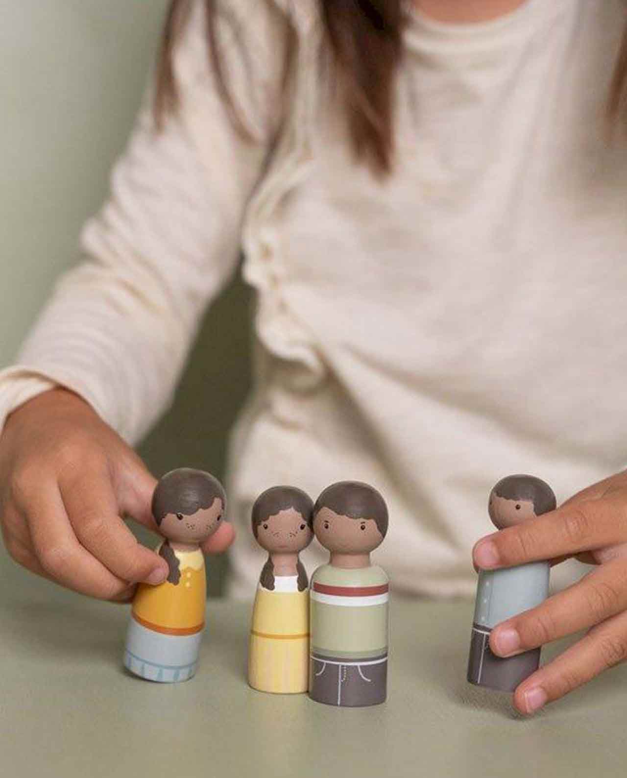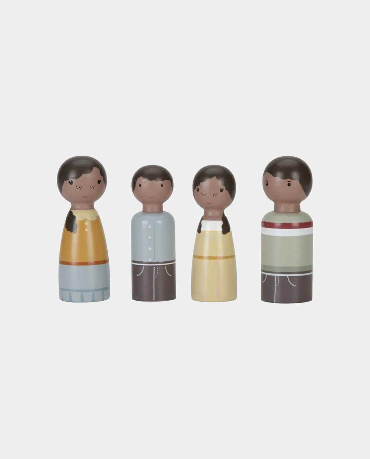 Esta familia es un conjunto de muñecos con clavijas de madera, formado por un padre, una madre, un hijo y una hija. Este conjunto de expansión es una gran set extra de la casa de muñecas de Little Dutch. Garantiza horas de diversión.