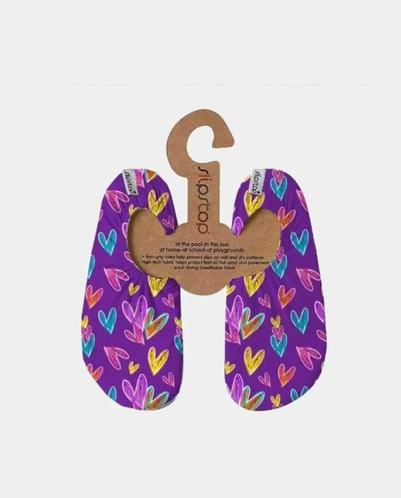 SlipStop es una zapatilla antideslizantes tipo escarpines para niños, de agarre firme, ligeras, flexibles y antideslizantes para usar en la piscina, en la playa, en casa, en los parques de bolas, en baile, kárate o gimnasio, etc. Están pensados para evitar resbalones en suelos mojados o húmedos, a la vez que protege el pies de superficies calientes y rugosas.