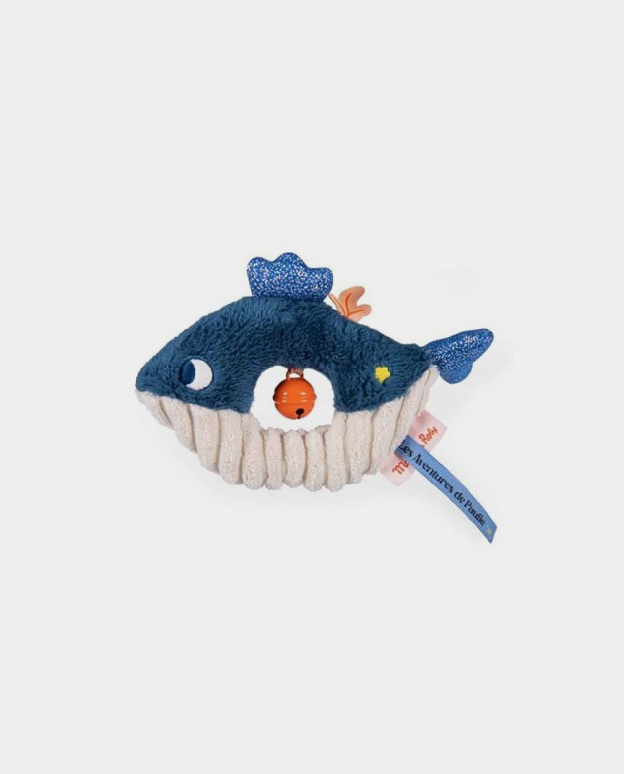 De la colección Las aventuras de Paulie, Moulin Roty nos trae este sonajero de tela para colgar con la forma de una ballena especialmente diseñado para las manitas pequeñas de los bebés, y que se convertirá en el compañero ideal para los primeros descubrimientos de tu peque.