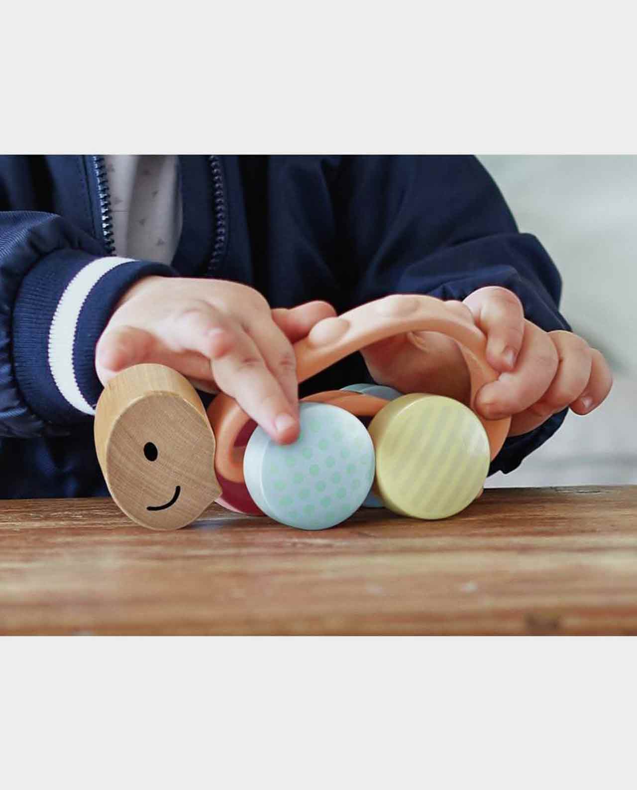 Este adorable coche de juguete con ruedas y sonajero es el compañero perfecto para juegos divertidos e imaginativos. Debido a que el juguete está hecho de material de arroz, es suave al tacto y tiene un olor agradable. Los suaves sonidos al empujarlo animan a gatear.