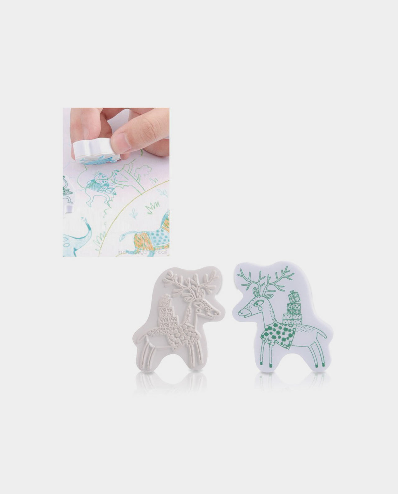 · Contiene 8 sellos de goma de varios animales y almoadilla de tinta verde.