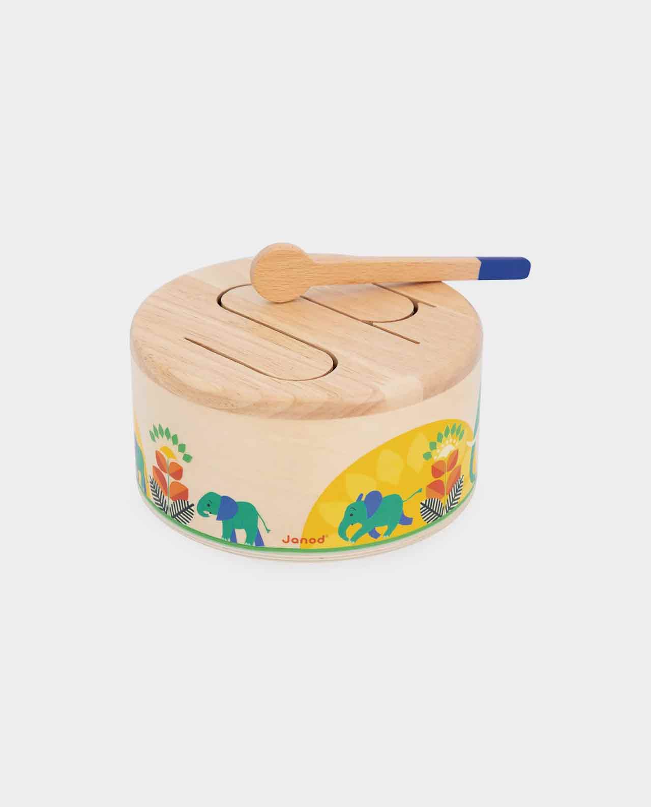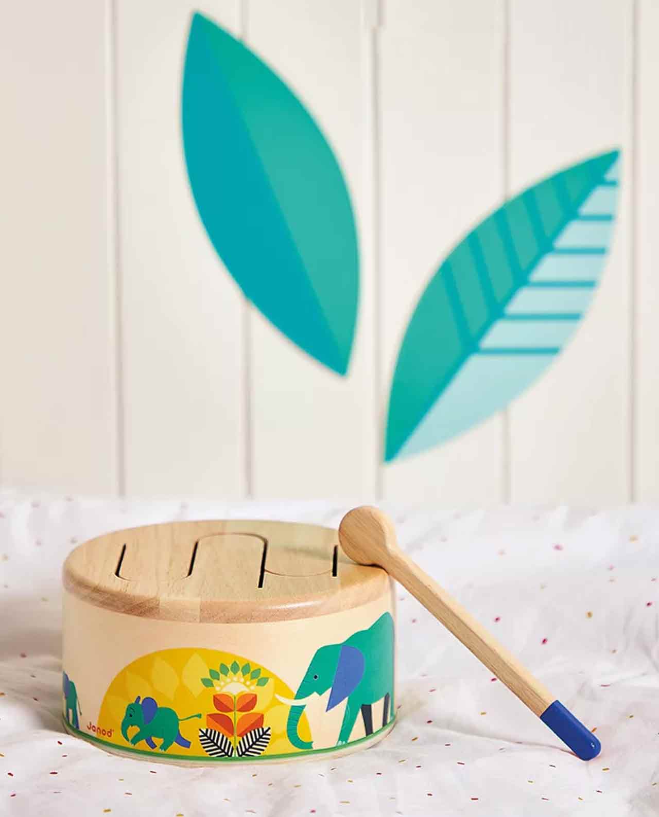 ¡El bebé toca el tambor! Descubrid nuestro tambor de madera para bebés, apto para pequeños músicos a partir de 18 meses. Este juguete musical hace que el niño se familiarice con las bondades de la música y favorece su estimulación ante los sonidos. Este tamborcillo de madera es fácil de manejar, incluso para los más pequeños. Incluye una baqueta lista para tocar el tambor. ¡Gracias a este juguete de estímulo musical, los más pequeños pueden explorar el mundo de la música y desarrollar su sentido del ritmo!