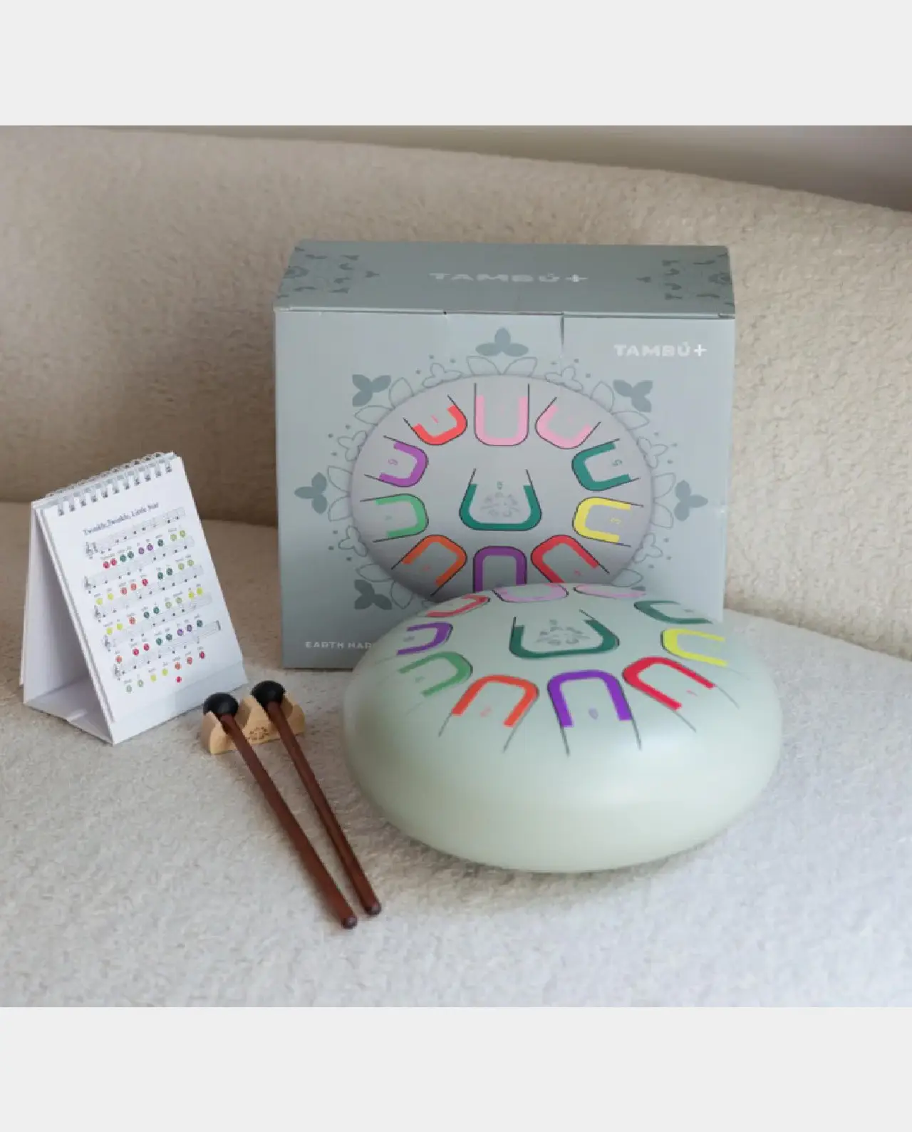 Tiene 11 notas diferenciadas por números y colores que emiten sonidos armónicos relajantes que se pueden tocar con baquetas o con las manos. Dependiendo de la intensidad de toque, se emitirá una intensidad de sonido distinto.
