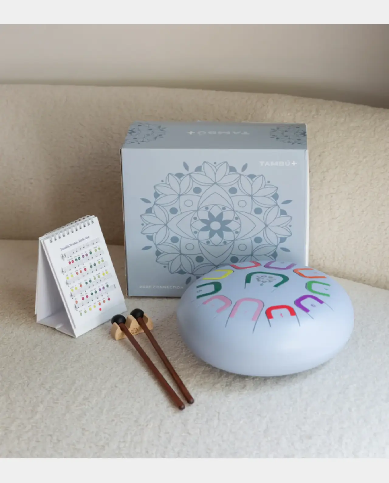Tambú+ es la versión extendida del clásico Tambú, tiene un diámetro de 25 cm, ofrece mayor resonancia y profundidad sonora, está afinado en Fa y su tono es cálido y reconfortante.