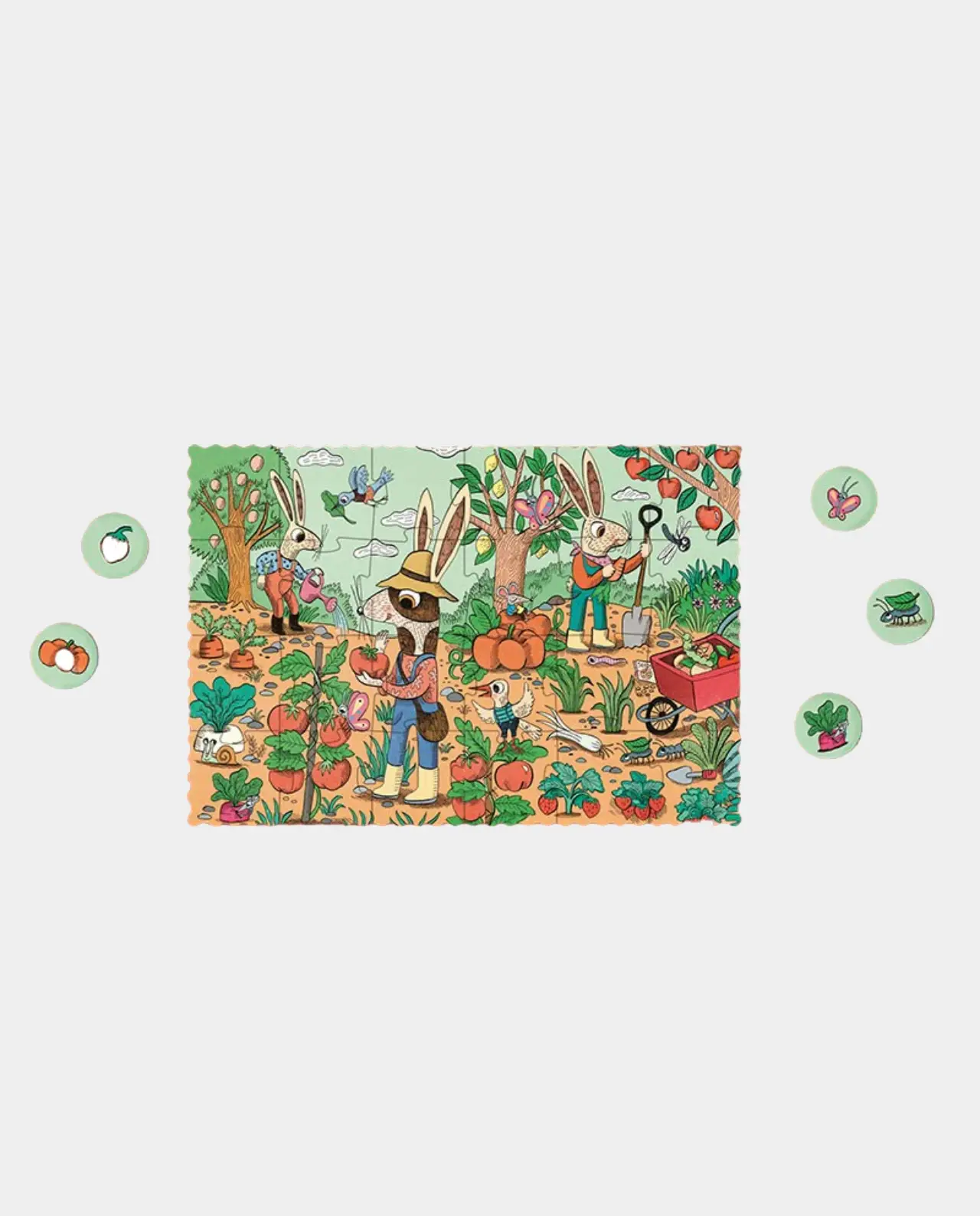 ¡Una vez montado el puzzle nos divertiremos buscando todos los detalles de su huerto!