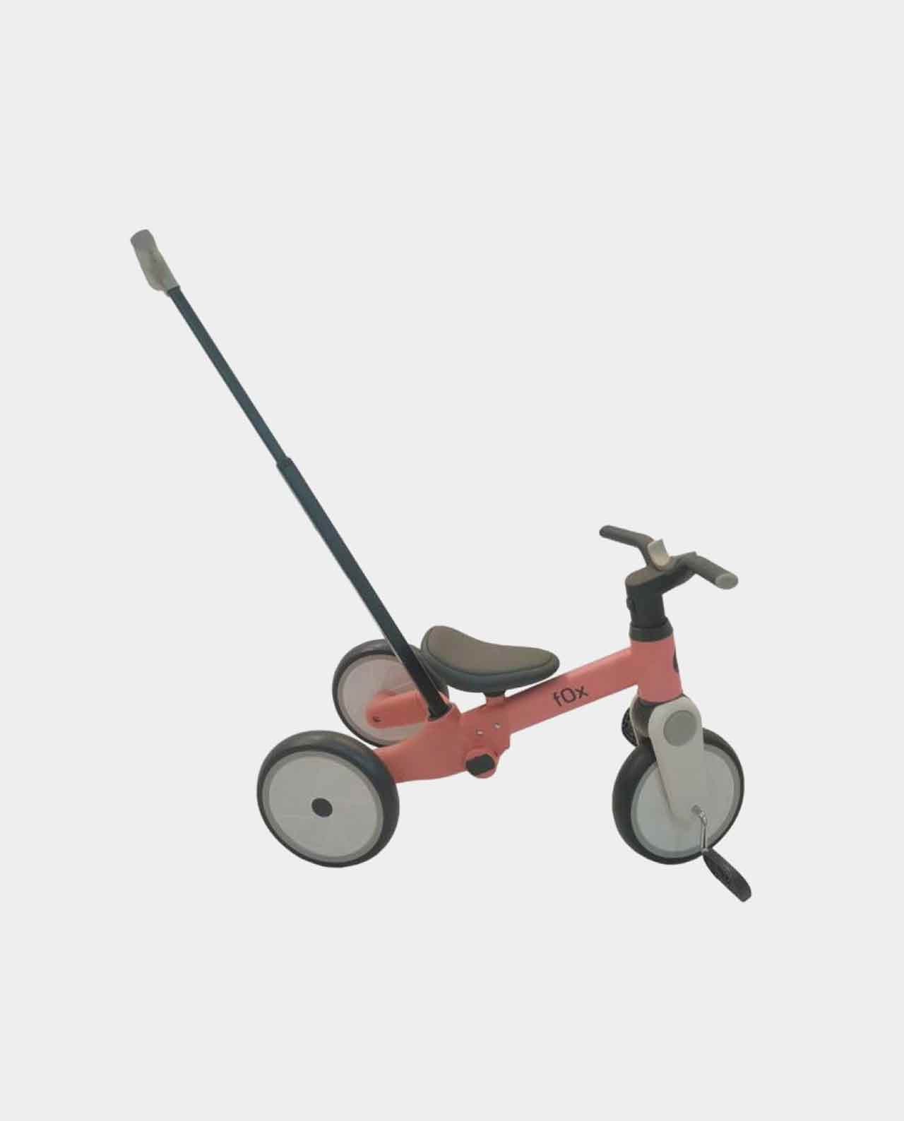 Ideal para paseos iniciales, este triciclo incluye una barra ajustable para que los padres puedan guiar cómodamente mientras el pequeño disfruta del paseo. - Fase 2: Triciclo de equilibrio con soporte trasero