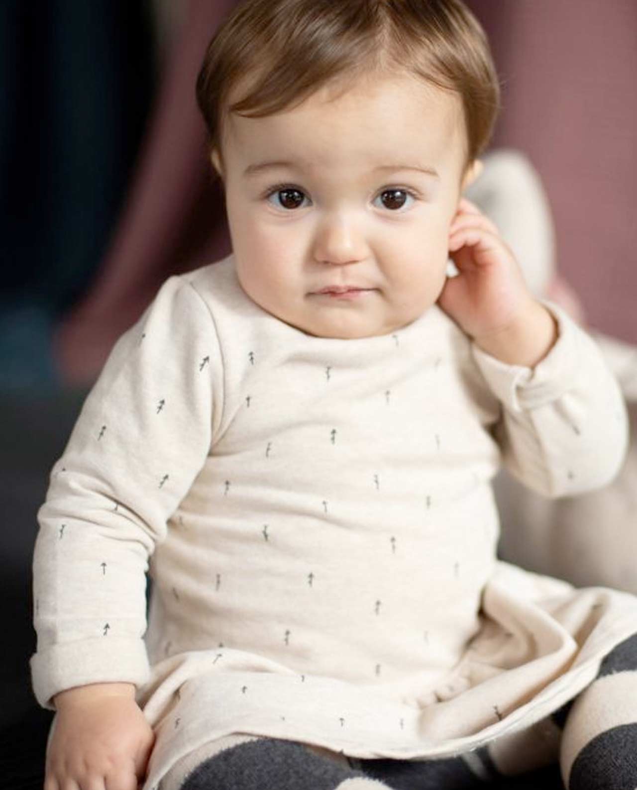 Vestido para niño confeccionado en algodón 95% y elastano 5% con la falda fruncida.