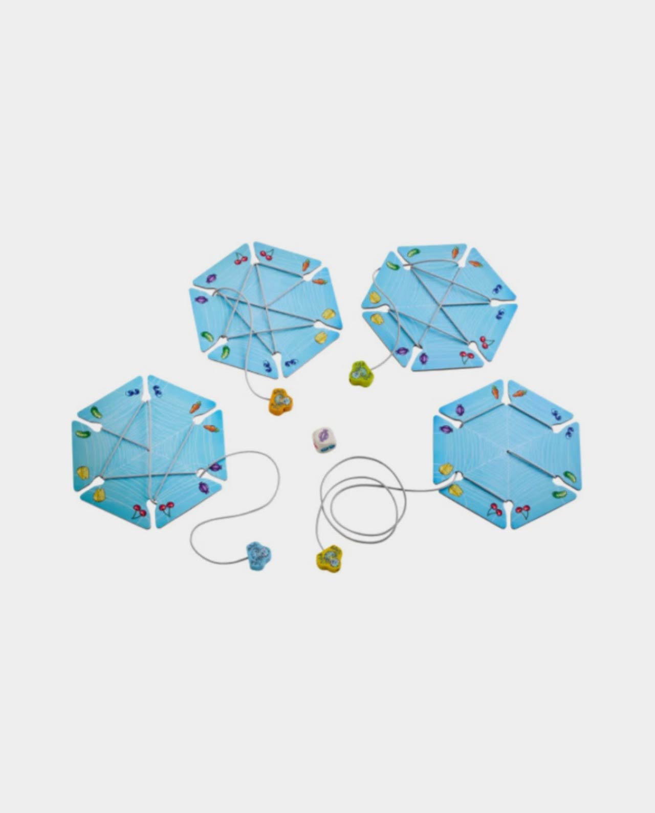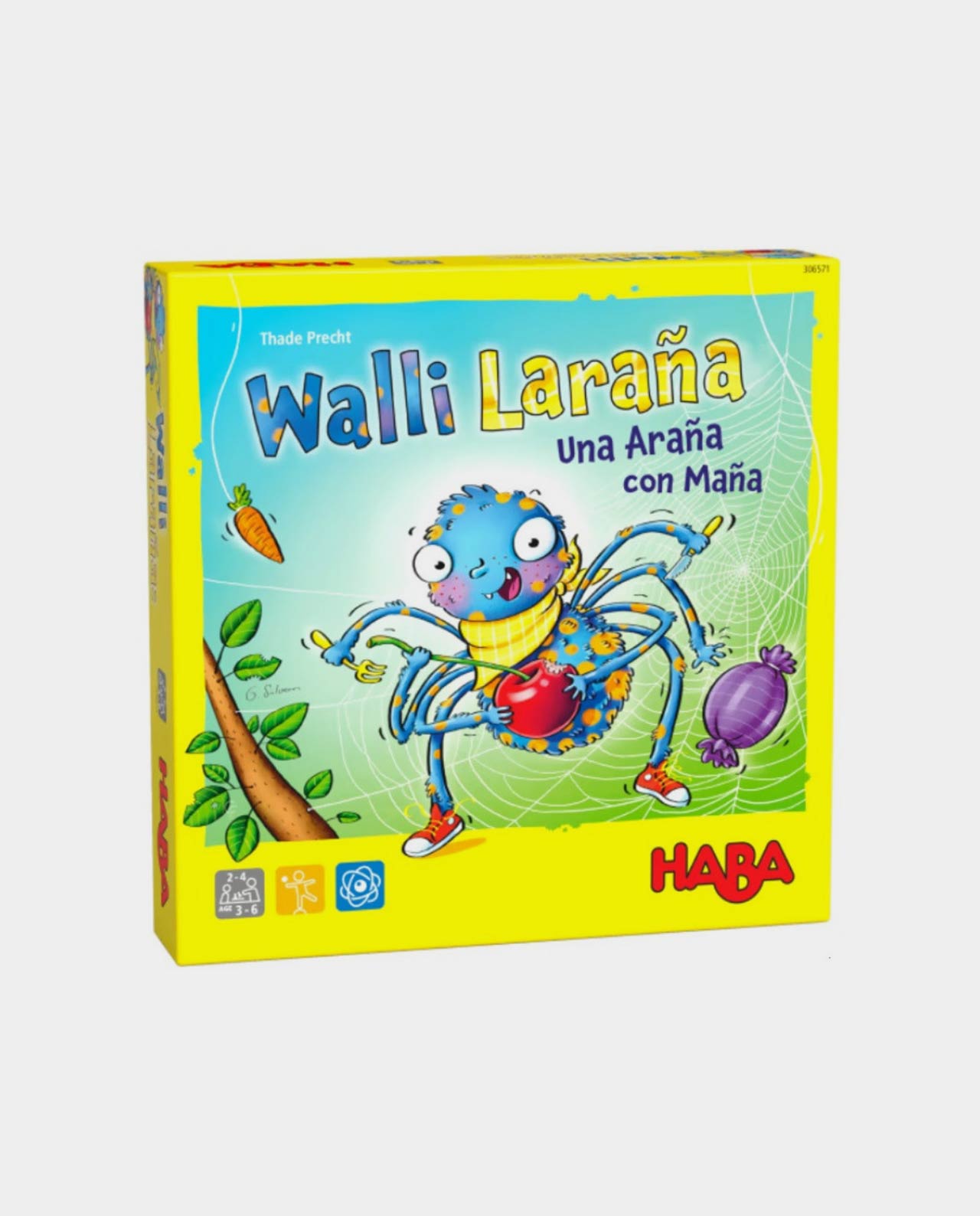 Walli y sus amigas han tejido hoy unas telas de araña especialmente bonitas y grandes. Pero en sus telarañas no atrapan moscas, sino queso, caramelos y otras exquisiteces. Los jugadores/as ayudan a las arañas a alcanzarlas lanzando el dado y tejiendo con habilidad. Pero, ¡cuidado! Los hilos son cada vez más cortos. Gana quien mantenga a su araña más tiempo paseando por la tela.